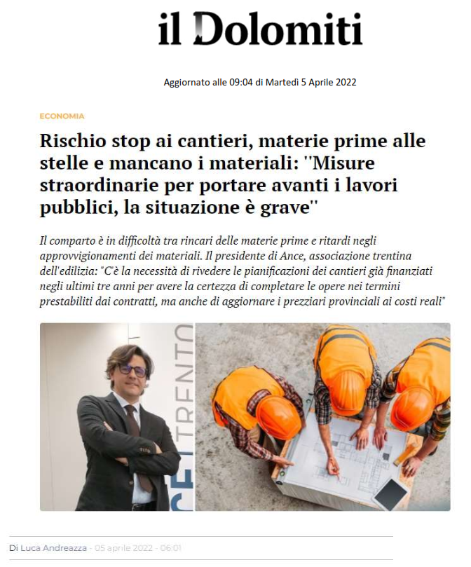 Articolo de “il Dolomiti” del 5 aprile 2022