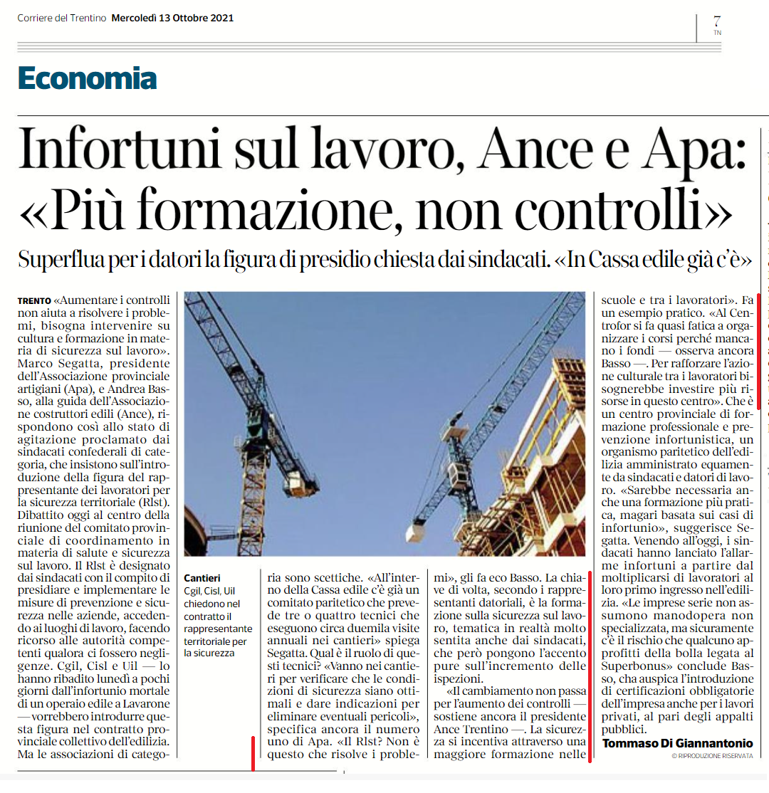 Articolo del “Corriere del Trentino” del 13 ottobre 2021
