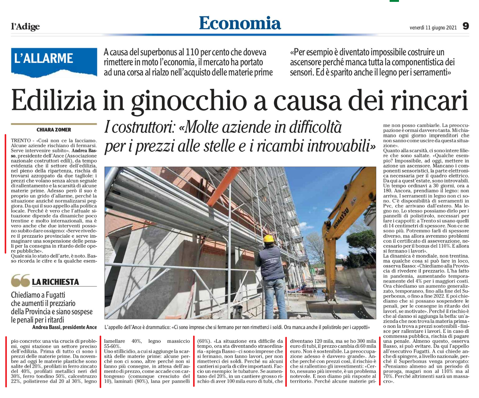 Articolo del “L’Adige” del 11 giugno 2021