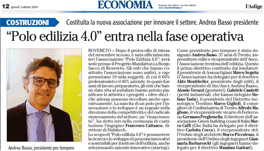ARTICOLO DEL “L’ADIGE” DEL 3 OTTOBRE 2019