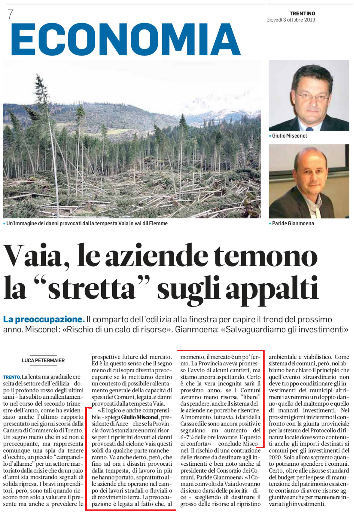 ARTICOLO DEL “TRENTINO” DEL 3 OTTOBRE 2019