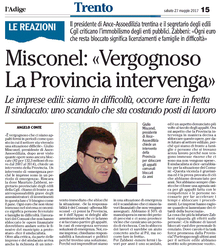 Intervento su l’Adige del 27 maggio 2017